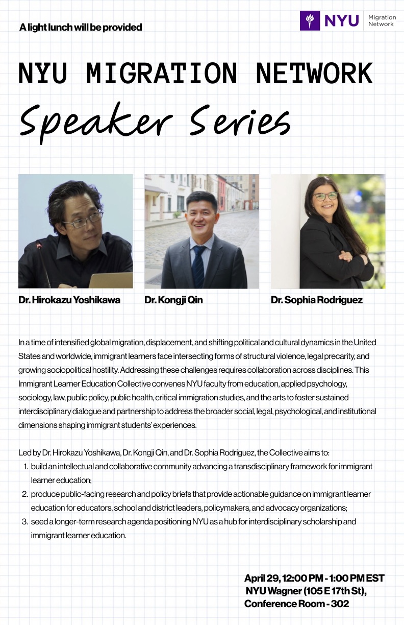 Who: Dr Hirokazu Yoshikawa, Applied Psychology, NYU Steinhardt, Dr. Kongji Qin, Language Education, NYU Steinhardt, and Dr. Sophia Rodriguez, Educational Policy Studies & Sociology, NYU Steinhardt